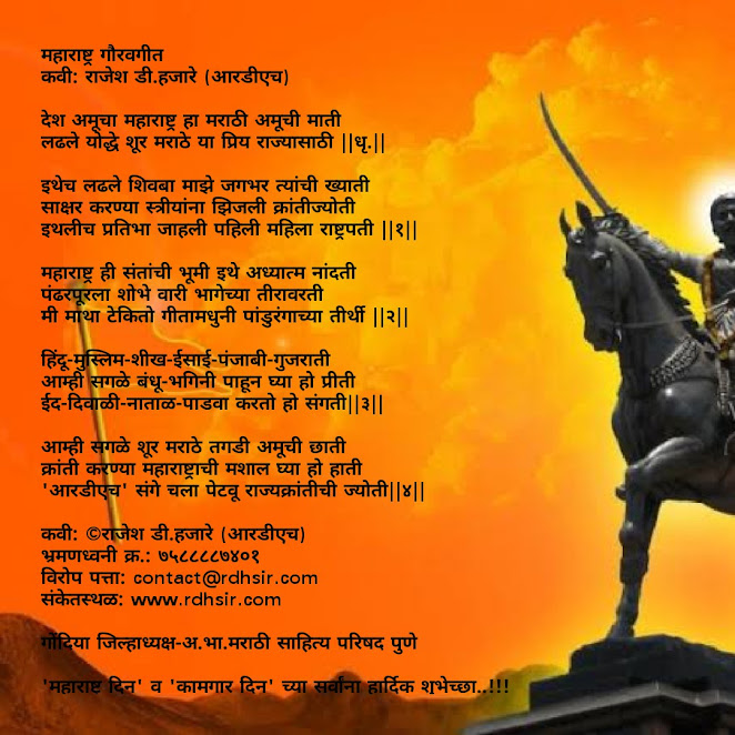 आज १ मे रोजी महाराष्ट्राच्या वर्धापनदिनानिमित्त राजेश डी. हजारे 'आरडीएच' ची रचना: